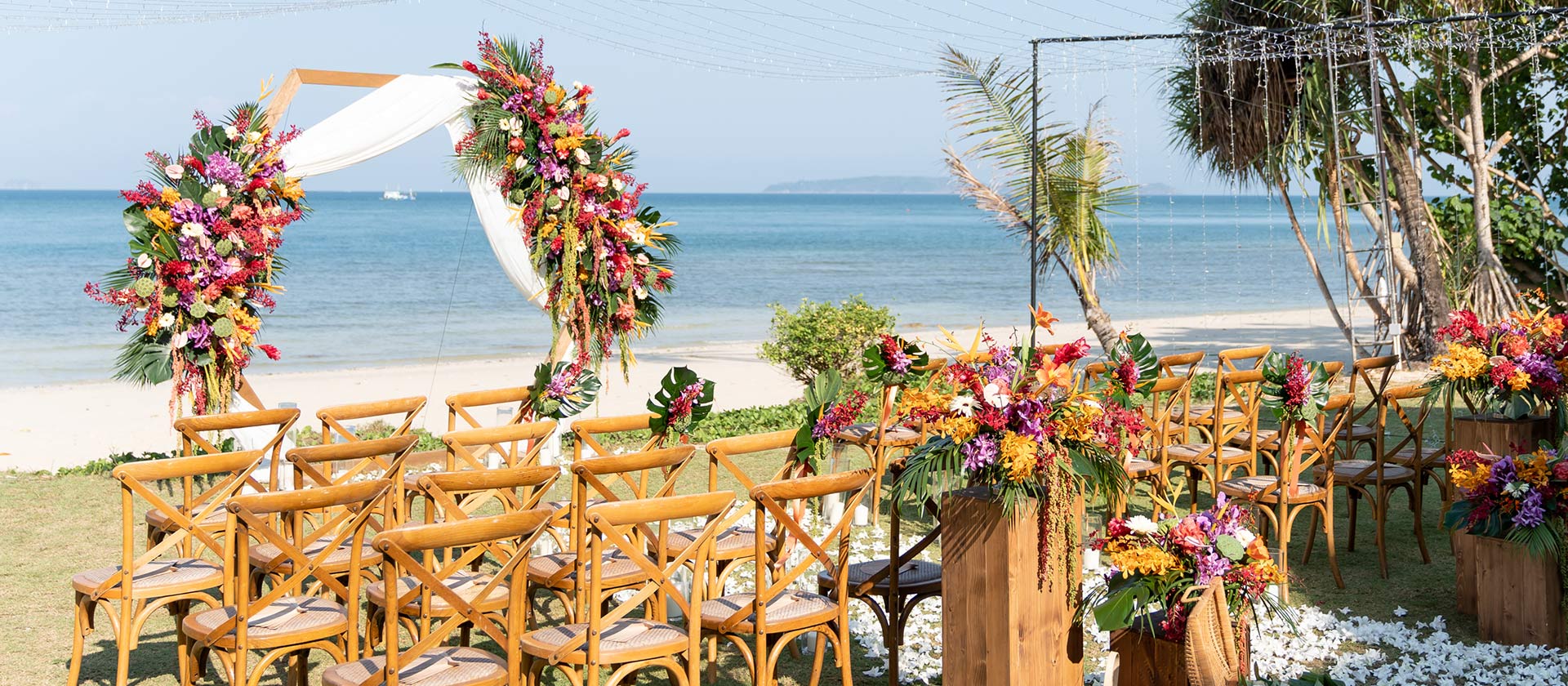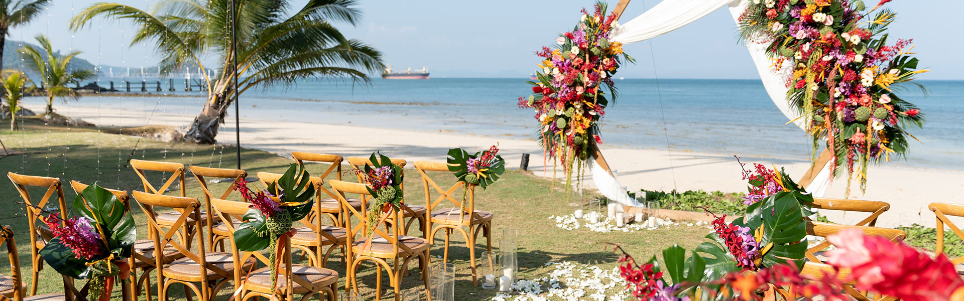 Bamboo Bar ริมทะเลมอบบรรยากาศสบาย สำหรับวันแต่งงานของคุณ เหมาะทั้งพิธีแต่งงานแบบคริสเตียน พิธีไทยแบบพุทธ แขกของคุณจะได้ชมช่วงเวลาที่คุณเอ่ยคำสาบานใต้แนวต้นมะพร้าวไหวเอน ก่อนร่วมรับประทานอาหารแบบสบาย ๆ ในสไตล์อัลเฟรสโกไปด้วยกัน